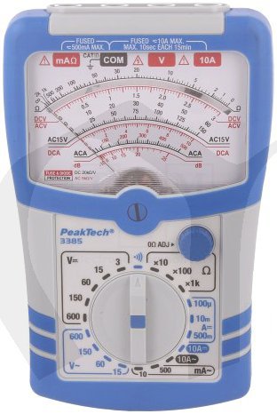 Analogový multimetr se zrcátkem na stupnici, magnetoelektrický měřící systém a ruční přepínač rozsahů pro snadnou volbu. Ideální pro rychlé měření během servisu.