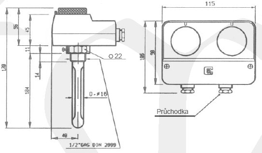 Termostat E1188 dvojitý stonkový, rozsah 0-60°/30-120°C, přepínací kontakty, s krytem IP54, jímka 100mm G1/2"
