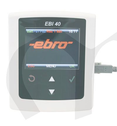 EBI40 je vícekanálový záznamník teplot s grafickým displejem pro zobrazení aktuálních nebo zaznamenaných dat. Záznamník obsahuje dva USB porty, jeden pro připojení k počítači, druhý pro připojení USB flash disku pro stahování dat bez PC. Volitelně je možné záznamník dodat s LAN konektorem pro přímé připojení do počítačové sítě.