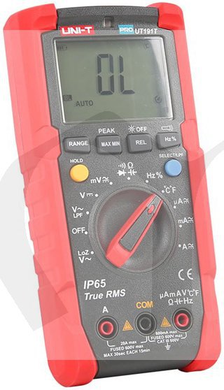 Profesionální multimetr řady UT191 určen pro průmyslové uživatele ( elektrikáře, opraváře, údržbáře a servisní techniky) . Je vhodný pro každodenní použití v i těch nejdrsnějších podmínkách. Přístroj vydrží pád ze 2m a díky stupni krytí IP65 poskytuje vynikajicí ochranu vůči vodě a prachu. Nová funkce paměti si zachovává nejnovější nastavení režimu při příštím zapnutí a zvyšuje efektivitu pro uživatele. UT191T podporuje přesné měření teploty.