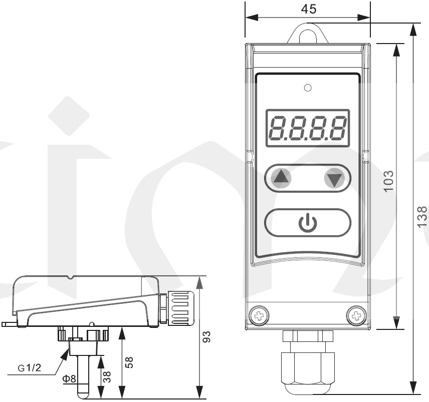 Termostaty E8183 (příložný), E8184 (kabelový), E8185 (stonkový) jsou vybaveny funkcí nastavení diference-hystereze spínání a funkcí