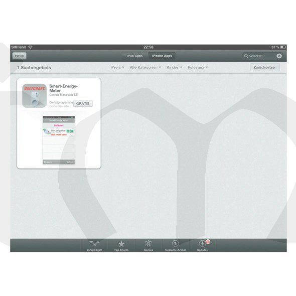Smartphone nebo tablet není součástí dodávky. Název aplikace: Voltcraft Smart-Energy-Meter