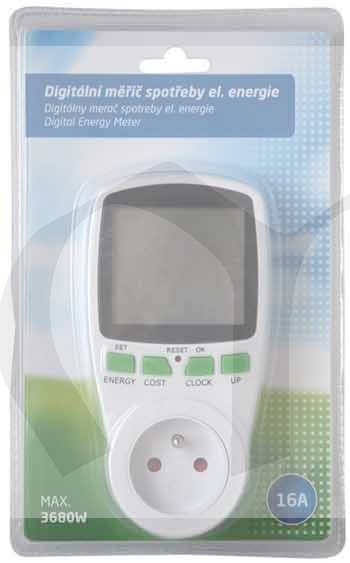 Měřič spotřeby el. energie s výpočtem ceny. Velký LCD displej (2,8" - 7,2cm) umožňuje přehledné zobrazení měřených hodnot.