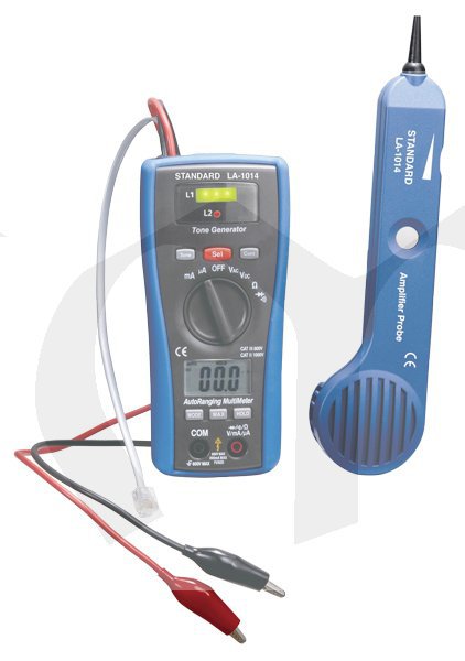 S přístrojem LA 1014 (LSG-4DMM) jednoduše najdete vedení ve stěnách, stropech a podlahách. Skládá se z generátoru, který moduluje vysokofrekvenční signál na testovaném vedení a velice citlivého příjmače, který spolehlivě najde kabel ve zdi až do hloubky 15cm. Možnost připojení signálu přes krokosvorku nebo konektor RJ11. Co však tento přístroj vyvyšuje nad ostatní, je mnoho funkcí multimetru. Pro běžné měření tak již nepotřebujete další přístroj.