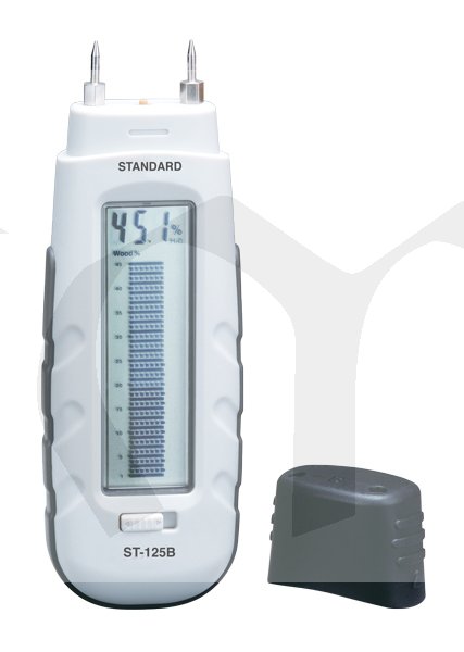 Odolný a přesný měřicí přístroj ST125B (FM-200 , DT-125B ) k určení vlhkosti dřeva a stavebních materiálů (omítka, beton,...). Vysokou přesnost zajišťují dva rozsahy měření, jeden pro dřevo a druhý pro stavební materiály. Funkčnost přístroje můžete vždy otestovat pomocí odporů integrovaných v krytu hrotů.