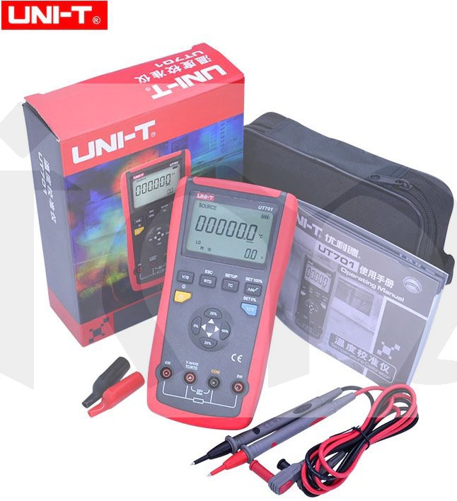 Přístroj UT701 je jednoúčelový velmi přesný profesionální kalibrátor pro testery termočlánků různých druhů. Je vhodný pro uživatele ke kalibraci a opravám různých teplotních testerů pomocí simulace termočlánků (10 typů termočlánků) nebo odporových teplotních detektorů (4 typy RTD) a funkcí výstupu napětí / odporu (ručně , nebo automaticky krokově měnitelných). Snadno ovladatelné klávesy, volitelné kroky a výstupy rampy zvyšují efektivitu a přesnost operací. Je vybaven nastavitelným podsvícením LCD, automatickým vypínáním, dvoubarevným injekčním plastovým pouzdrem a odolností proti pádu z výšky 1 m. Automatický test kalibrátoru a displeje při zapnutí přístroje. Nastavitelné podsvícení displeje. Možnost tří nebo čtyřvodičového měření termočlánků. Manuální nebo automatické simulace studeného konce termočlánku.