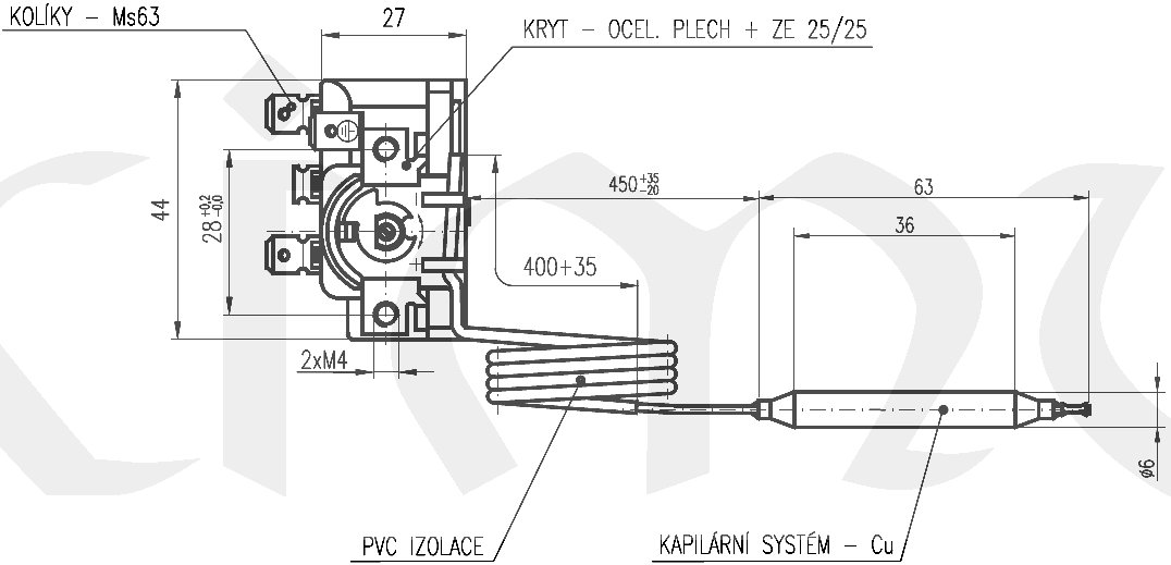 Kapilární regulátor (termostat) za normálních pracovních podmínek udržuje teplotu ve spotřebiči nebo jeho části, v mezích nastavených uživatelem automatickým vypínáním a zapínáním elektrického obvodu. Typické použití termostatu KR je při regulaci elektrických ohřívačů vody.