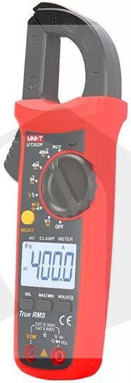 Digitální klešťový měřič UT 202R slouží pro měření střídavých a stejnosměrných napětí do 600V, AC proudů do 400A a frekvece napětí do 600V. Na všech rozsazích má ochranu před větším napětím než 600V a zvukový a optický alarm. Čtyřmístný více segmentový displej o rozměru 37 x 25 mm se zadním podsvícením a rychlou obnovovací frekvencí (3krát/s) . Rozevření čelistí umožňuje měření na kabelech o průměru až 28mm. Bezkontaktní snímání elektrického pole (NCV) umožňuje detekovat vodiče pod napětím ve dvou citlivostech -EFLo a - EFHi pro rozvody nn 110V/50/60Hz a 230V/50/60Hz. Přiložená sonda - kryt hrotů na testovacích kabelech umožňuje měření na rozvodech nn v kategorii CAT III bez nebezpečí vzniku oblouku. Bez krytů na hrotech lze měřit testovacími kabely jen na rozvodech nn kategorie CAT II.
