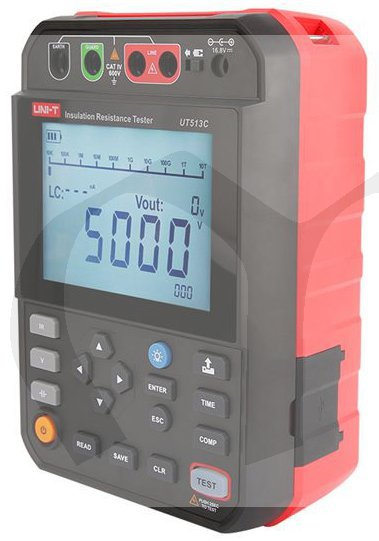 Tester izolačního odporu UT-513C 5 kV , je digitální vysokonapěťový tester izolačního odporu, navržený s několika rozsahy včetně 250 V, 500 V, 1000 V, 2500 V a 5000V.