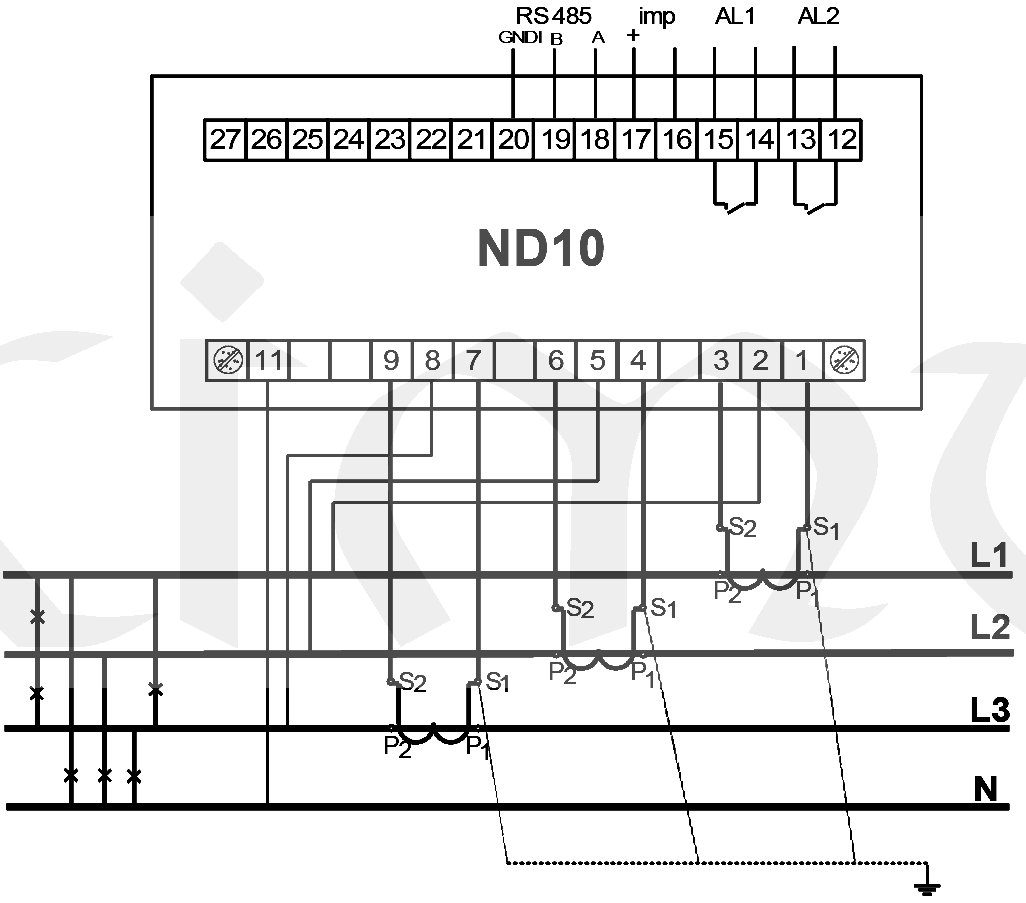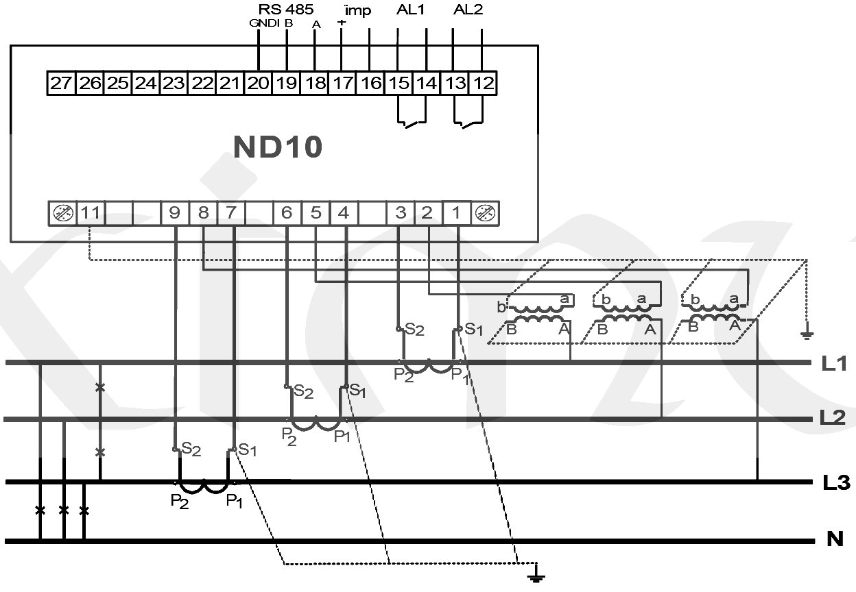 ND10-22100E1, x/5A, 3x230/400V RS485