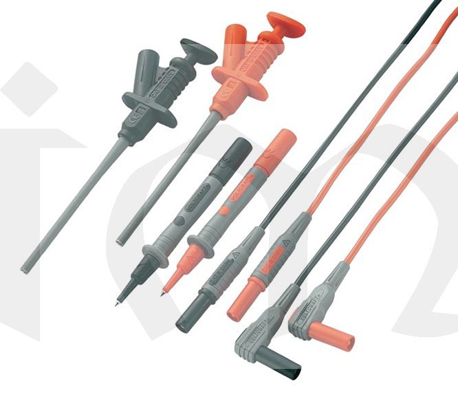 Všestranně použitelná sada měřicích vodičů, skládající se z komponent s ochranou proti dotyku 4 mm pro použití v rámci bezpečnostní kategorie CAT III 1000 V. Krokosvorky vhodné pro použití v kategorii přepětí II 1000 V.