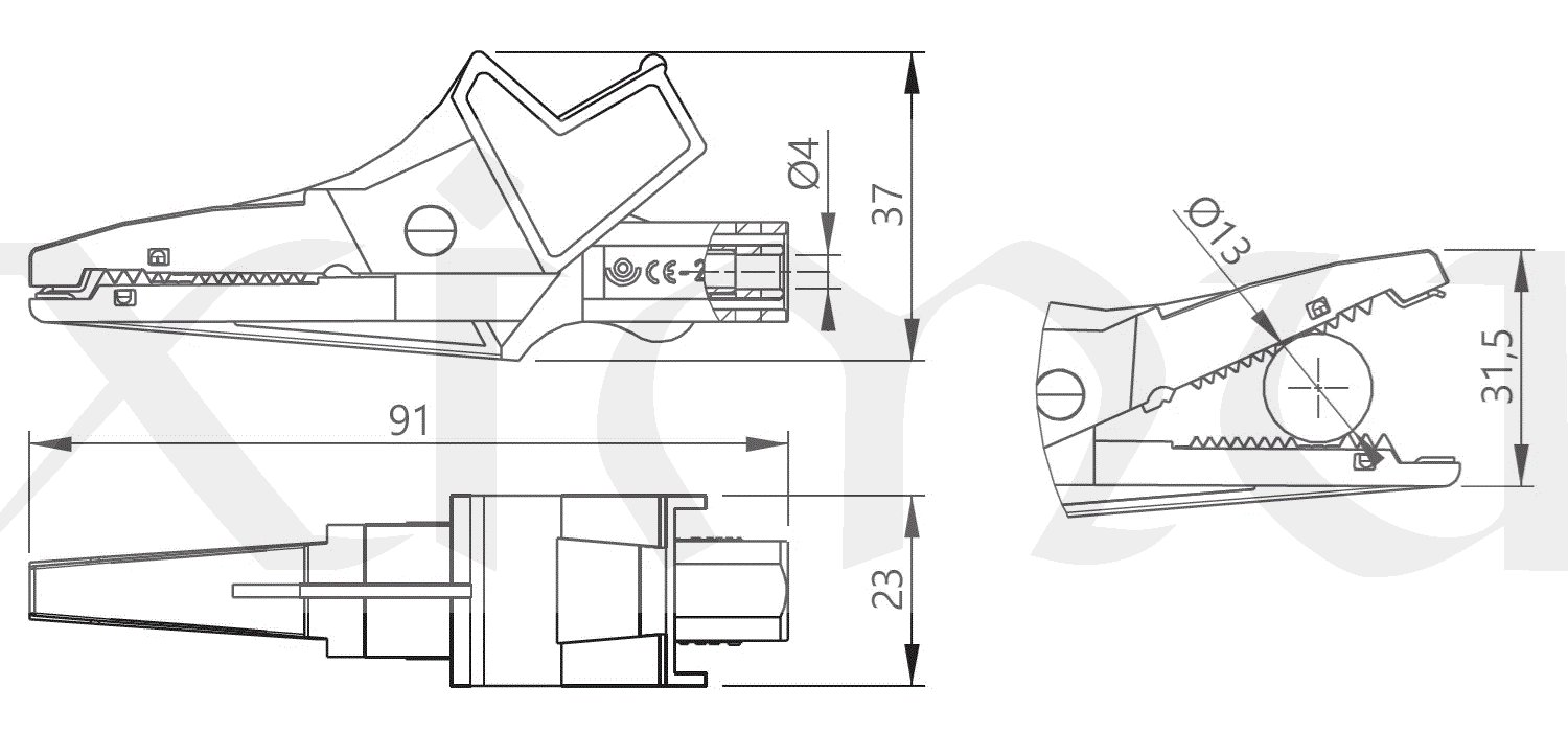Bezpečnostní krokosvorka pro bezpečnostní banánek průměr 4 mm