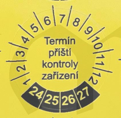 Samolepicí štítek pro označení data příští kontroly spotřebiče.