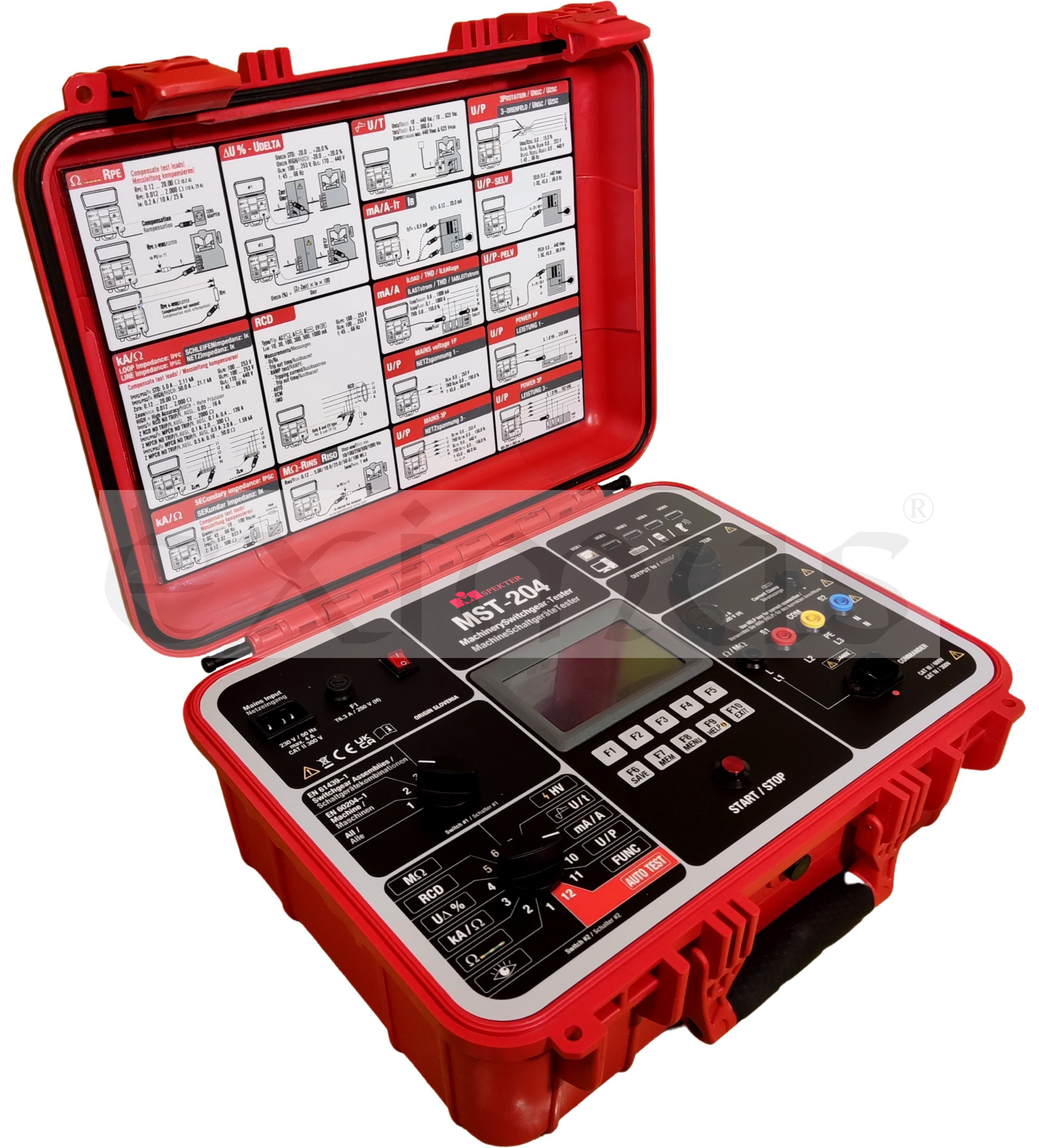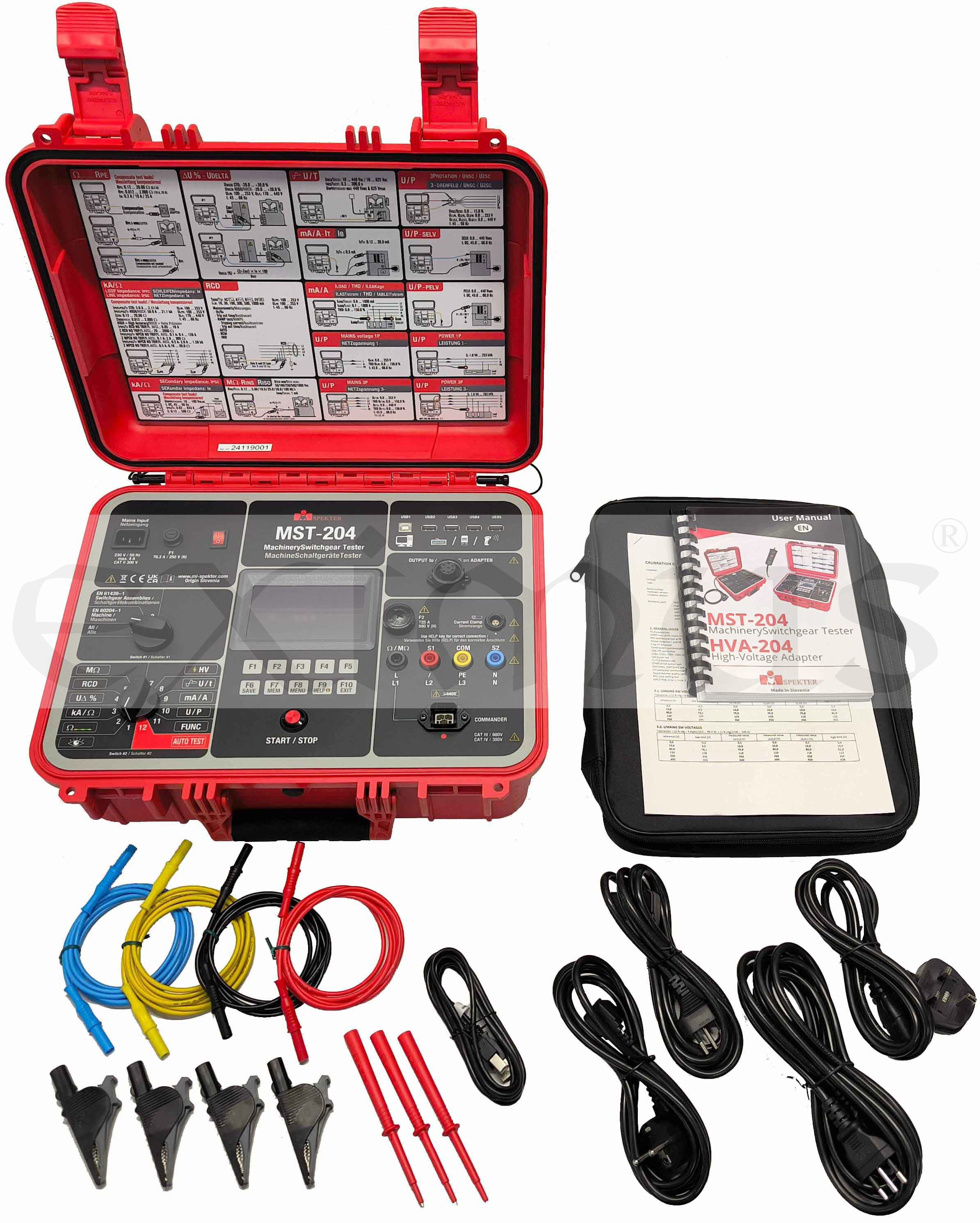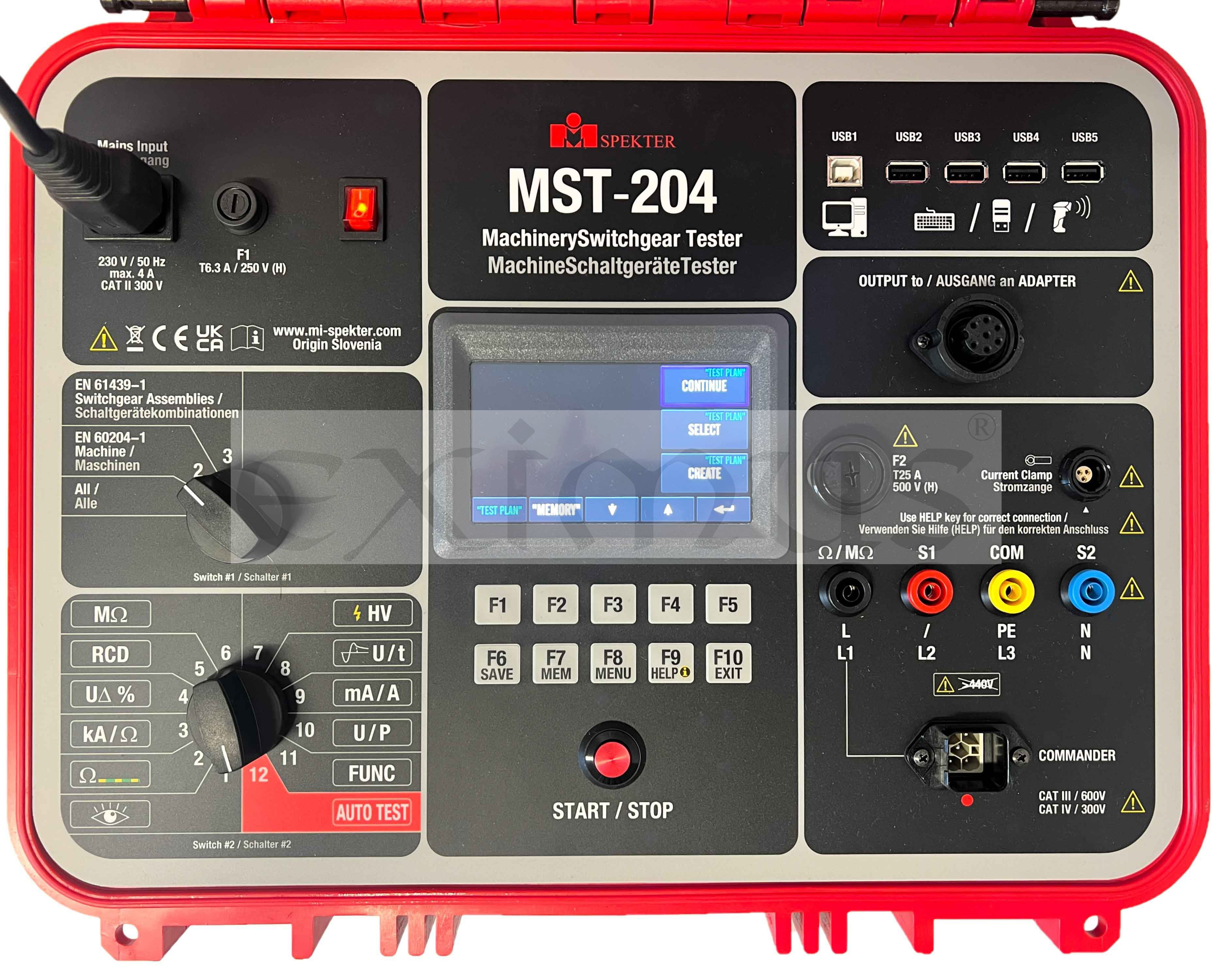 Multifunkční tester Mi Spekter MST 204 je měřicí přístroj určený pro testování účinnosti ochranných opatření v strojích, nízkonapěťových spínacích zařízeních a rozváděčích. Použití vysokonapěťového adaptéru (HVA-204) rozšiřuje funkčnost hlavní jednotky o schopnosti pro testování střídavého vysokého napětí. Trojfázový adaptér (TPA-204) umožňuje uživatelům testovat svářecí zařízení, přenosné spotřebiče, prodlužovací kabely, PRCD, nabíjecí kabely pro elektromobily a další. Pokročilá funkce AUTO-TEST umožňuje uživatelům rychle a snadno vykonávat předdefinované testovací sekvence nebo testovací plány vytvořené zákazníkem. Vestavěná velká paměť dokáže uchovávat změřené výsledky, které mohou být později přeneseny do počítačového softwaru pro vytváření testovacích protokolů.