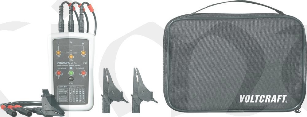Zavěšením testeru na otáčivý 3fázový elektromotor může být směr otáčení zjištěn bezdotykově.