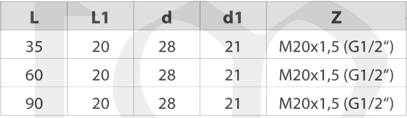 Návarek k teploměrům 90x pr.28mm, M20x1.5