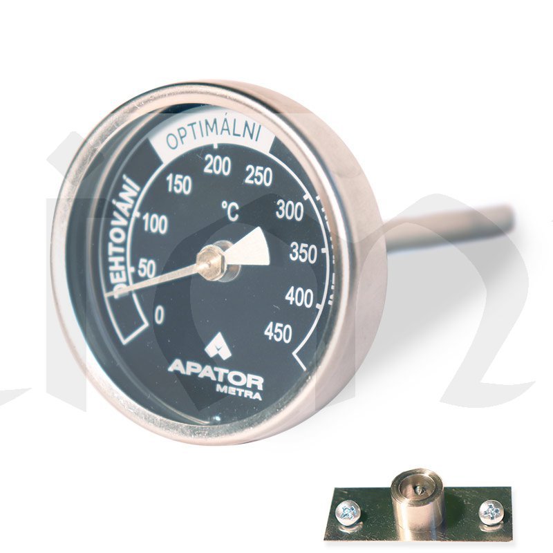 Měřená hodnota nesmí překročit maximální rozsah stupnice. Hlavice teploměru může být umístěna do jednoduchého prostředí v rozmezí teplot -30...+110°C. Při čištění kouřovodu se musí teploměr vyjmout!.