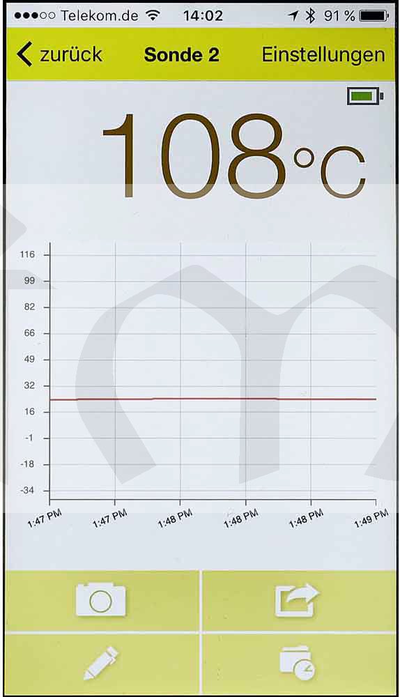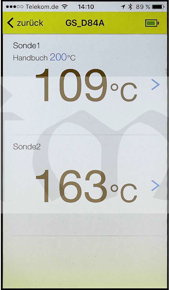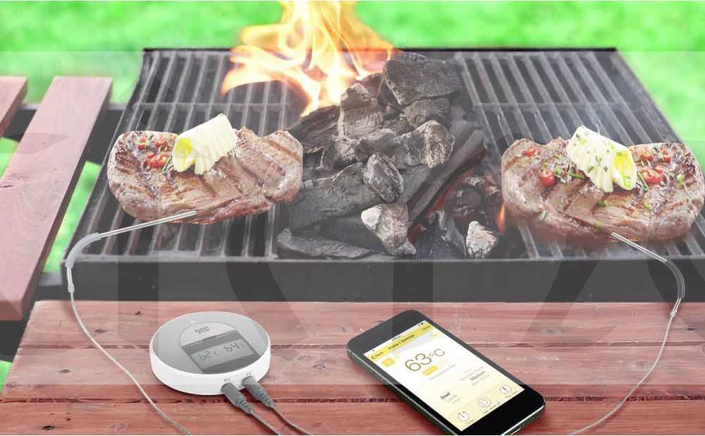 Obsluha a programování pomocí aplikace "Grill Smart". Aplikace může být nainstalována v zařízení Smartphone nebo tabletu s operačním systémem Android nebo Apple iOS. Spojení mezi zařízením a teploměr pomocí Bluetooth® 4.0 . Můžete si vybrat přednastavené teploty nebo si je nastavit podle sebe. Lze nastavit i dva časovače.