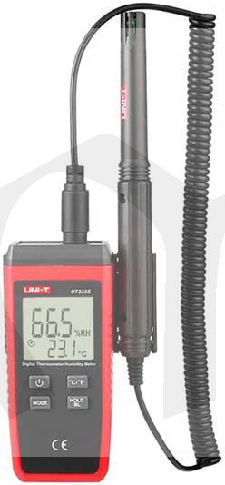 UT 333 S je přesný, bezpečný a spolehlivý digitální teploměr s vlhkoměrem a kompaktními rozměry. Displej je dělený a zobrazuje hodnotu teploty i vlhkosti současně, čímž usnadňuje měření v různých podmínkách a prostředích. Široce se využívá ve skladech obilovin, dopravě, archivech, zpracovatelství materiálu, lesnictví, chovech zvířat, zdravotnictví, vzdělávacích zařízeních, veřejném sektoru a domácnostech.