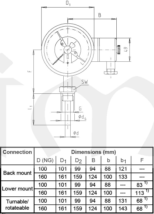 Průměr hlavice teploměru: 100mm nebo 160mm