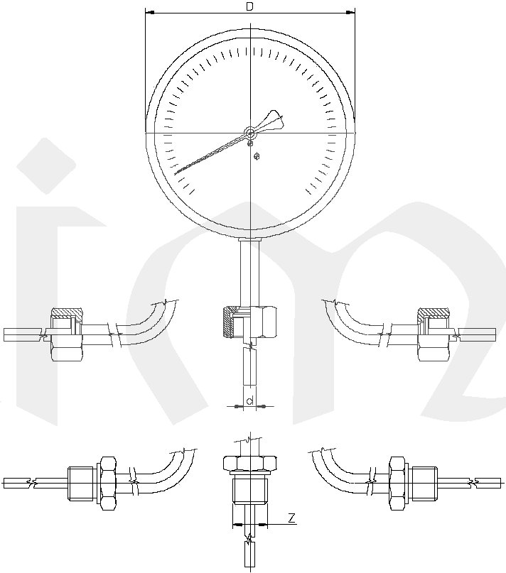 » s kapilárou až do délky 15m; průměr čidla 8,10,12,15mm; připojení s ořechem (M20x1.5, G1/2", G3/4", M27x2 atd..) nebo převlečnou maticí (M27x2, M30x2, M33x2, G3/4", G1" atd...)