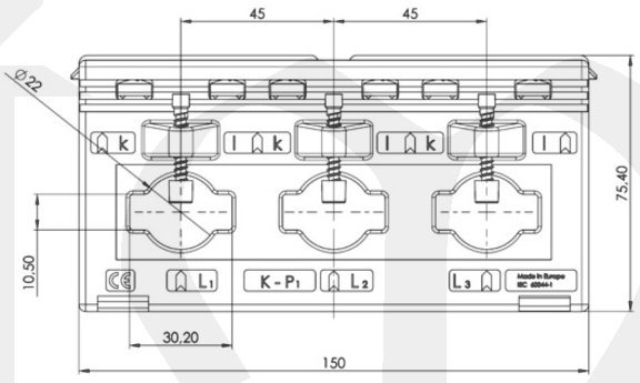 • Primární vodič plochý / kulatý: 30×10 mm / Ø22 mm