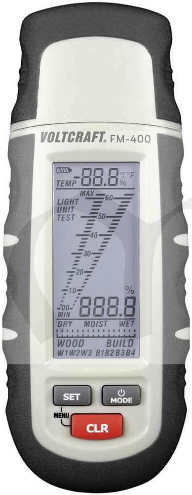 FM-400 - odolný a přesný měřící přístroj určuje vlhkost dřeva a stavebních materiálů, jako je omítka, potěr atd. Pro vysokou přesnost měření se dá volit mezi 3 skupinami dřev a 4 skupinami stavebního materiálu se speciálními charakteristikami. Přečtení výsledku usnadňuje sloupcová stupnice, stupnice s ukazatelem a přímý ukazatel hodnoty.