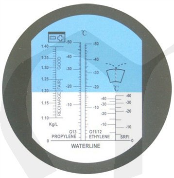 přesný přístroj určený k měření provozních kapalin automobilu s automatickou teplotní kompenzací.
