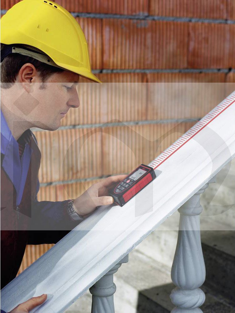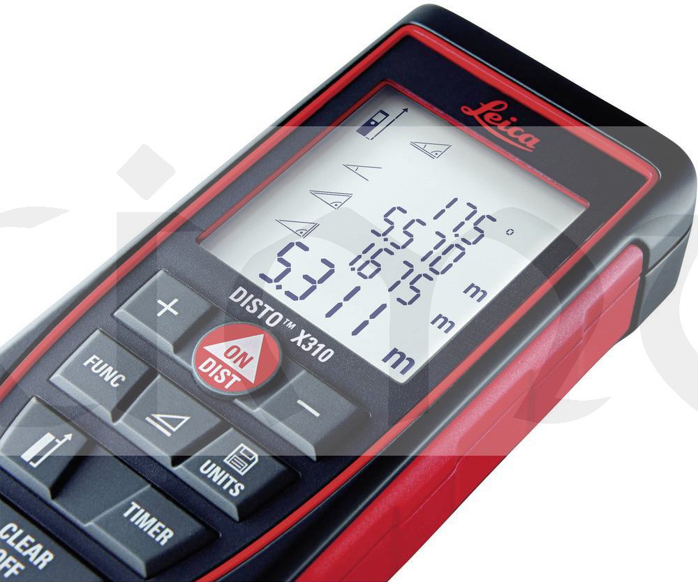 Leica DISTO™ X-310 je velmi odolný laserový měřič a chrání citlivé měřicí prvky masivními gumovými komponentami. To dělá z přístroje DISTO™ X 310 jedno z nejbytelnějších zařízení na trhu. Pouzdro a klávesnice jsou odolné proti vodě a prachu. Takže čištění pod tekoucí vodou není vůbec problémem. Sklony se zobrazují v rozmezí 360° a je možné je zobrazovat i v procentech (%). Laserový měřič vzdálenosti Disto X310 je za dobrých podmínek schopen změřit délku s úžasnou přesností ±1mm a to až do vzdálenosti 80m na běžném povrchu a do 100m na cílovou desku Leica +750Kč. Pomocí snímače sklonu můžete také určit nepřímé výšky.