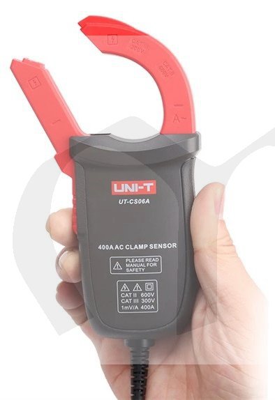 UTC506A je měřič střídavého proudu s vysokou spolehlivostí a bazpečností, který slouží jako podpůrné zařízení pro měření proudu multimetrem. Vyhovuje většině multimetrů UNI-T a vyznačuje se malým a pohodlným designem, který je ideálním nástrojem pro rozšíření proudových rozsahů pro multimetry. Kleště se používají ve spojení s mutimetrem, měří proud pomocí snímače a převádí naměřený proud na napětí, poté přenáší napětí do multimetru pomocí kabelu, čímž se na multimetru zobrazí odpovídající hodnoty. UT-CS06A má schopnost měřit střídavý proud až do 400 A. Spolehlivá přesnost měření a jedinečný vnější design z něj činí praktický nástroj.