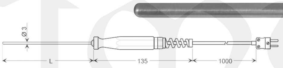 Jímka pr.3 mm z oceli V4A, L=130 mm, rukojeť z umělé hmoty, silikonový kabel, konektor NST1200.