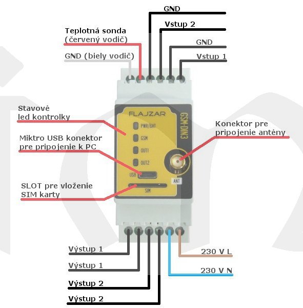 GSM-DIN3 je vybaven dvěma univerzálními vstupy, na které lze připojit kontakt libovolného čidla. Na mobilní telefon pak obdržíte informační SMS zprávu nebo volání v případě aktivace těchto vstupů. Vstupy mohou být přepnuty do režimu aktivačního / deaktivačního vstupu pro připojení klávesnice, RFID, přijímače dálkového ovládání. Zařízení pak slouží jako malá zabezpečovací ústředna s možností aktivace / deaktivace přístupovým systémem. Každý vstup může být pojmenován samostatně (text odesílané SMS). V případě, že je třeba mít vstupy trvale aktivní (v hlídacím stavu), lze je přepnout do režimu 24h. smyčky.