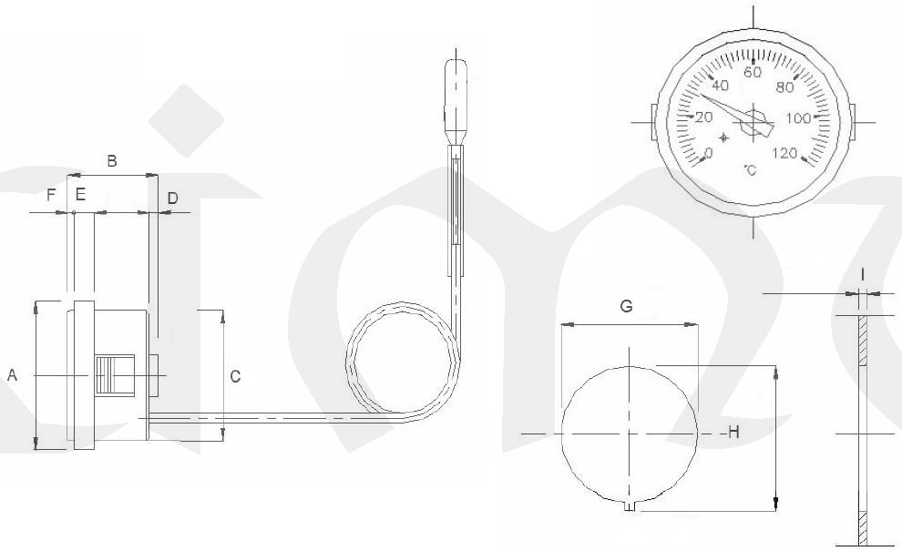 Rotační pohyb přímo úměrný vnitřnímu přetlaku je přenesen na ručičku, která ukazuje na stupnici naměřenou hodnotu. Vnitřní přetlak úměrný teplotě se vyvozuje teplotní roztažností kapaliny v čidle, které je se spirálou spojeno kapilárou.