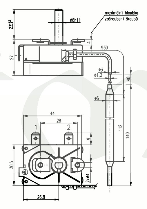 Montáž RT se provádí dvěma šrouby M4.