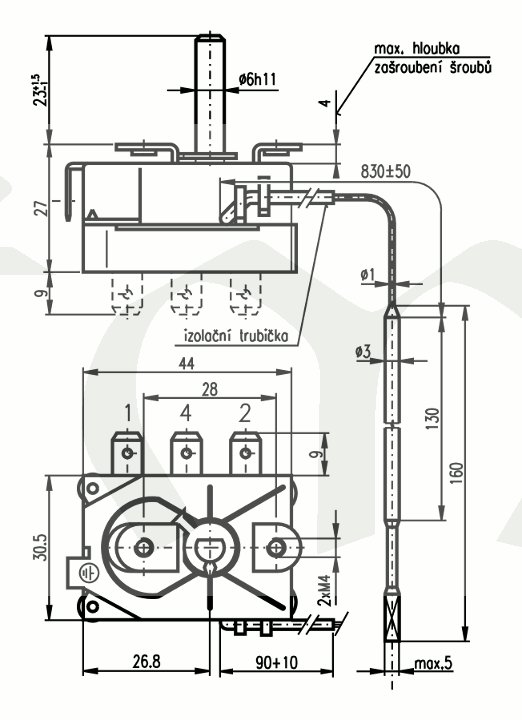 Po dohodě lze posunout regulační rozsah k nižší teplotě, dodávat RT v provedení přepínacím nebo v provedení 8804.01U s vývody otočenými o 90° (úhlové provedení - viz náčrt). Další informace je možné obdržet na poptávku. Výrobek je certifikován VDE.