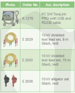 Měřič izolačních odporů Metrel TeraOhm 5kV Plus (MI 3201) měří izolační odpory do 10 TOhm, zkušebním napětím 250V až 5000V, které lze nastavit krokem 25 V.