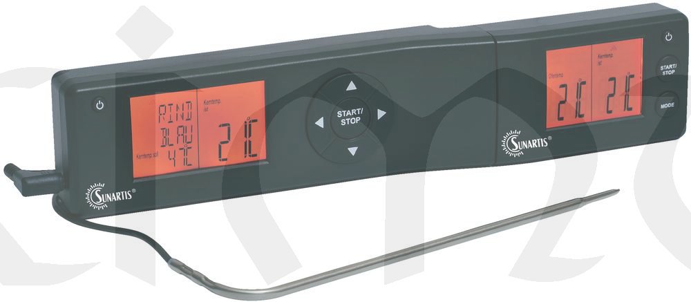 Základní jednotka zobrazuje k naměřené teplotě i nastavené hodnoty. Při překročení nastavené teploty se spustí alarm a odpočítávání času pomáhá udržovat správnou dobu pečení, vaření a pečení. Teplotní snímač bezdrátově přenáší teplotu do přijímací jednotky. To vám umožní sledovat teplotu, i když nejste v blízkosti sporáku nebo trouby.