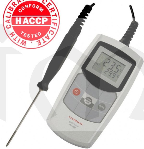 GMH2710-E - teploměr HACCP včetně zapichovacího snímače Pt1000, 2-vodič, izolovaný, vodotěsný a parotěsný,