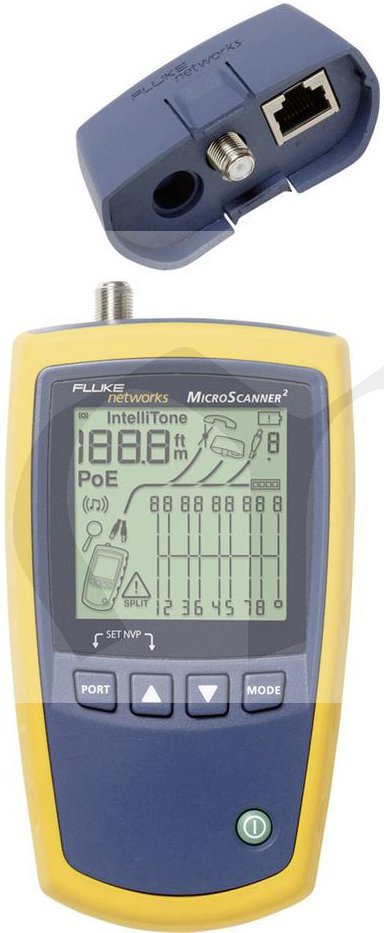 Další generace testerů MicroScanner, ověřující zvukové/datové/video kabely a služby s revolučním uživatelským rozhraním. Tester MicroScanner2 Cable Verifier představuje změnu v testování kabelů pro přenos hlasu, dat a videa. Změna začíná zobrazením výsledků čtyř dříve samostatných testů do jednoho, skládajícího se z grafického wiremapu, délky párů, vzdálenosti k chybnému místu, ID kabelu a rozpoznání vzdáleného zařízení. Navíc obsahuje integrované testovací RJ11, RJ45 a koaxiální porty, které virtuálně podporují kterýkoli typ nízkonapěťového testování kabelů bez potřeby nepříjemných adaptérů. Výsledkem je snížení potřebného času a počtu chyb při testování. To vše dělá vysoce kvalitní instalace efektivnější, než kdy jindy. Velký přehledný display, wiremap, délka segmentu, vzdálenost k problému, generování tónu do kabelu, měření koaxu, detekce zařízení na druhé straně segmentu a jeho rychlosti, detekce PoE.